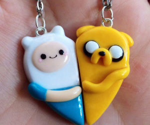 Cement the bond you have with your best bud in true Land of Ooo fashion with these Adventure Time friendship necklaces. The pair of necklaces each has one half of a Jake and Finn pendant that form a heart when placed side by side.