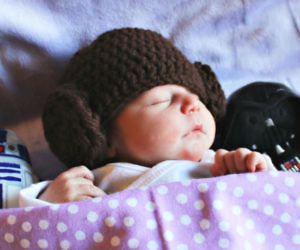 Transform your little newborn angel into intergalactic royalty by placing this Princess Leia baby hat on her head. Each hat is hand-crocheted from brown acrylic yarn in the form of Princess Leia’s iconic bun hairdo and is designed for newborns up to 16 months old.