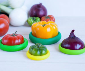 Preserve half-eaten fruits and veggies using these silicone food huggers. They come in a series of vibrant colors, work on open cans and jars, and help create an air tight seal around fruits and vegetables that are cut in half.