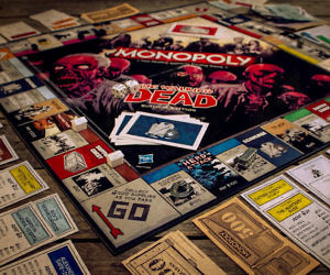 Become a titan of industry in the new world order by sitting down for an incredibly long game of The Walking Dead Monopoly. Every aspect of the game has been zombified to reflect the popular comic and television series – from playing pieces to property cards.